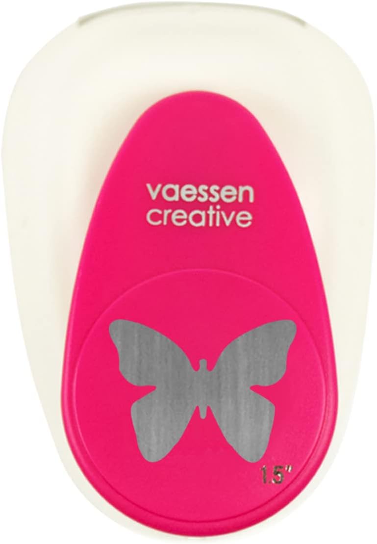 The butterfly punch from Vaessen Creative is the ideal punch for all your creative projects. Punch a butterfly of 1.7 x 2.1 cm and use the die cut shapes or the stencils created by the punches for scrapbooking, greeting cards or bullet journaling. You can also combine this motif with other shapes of perforated paper and other sizes. Thanks to the easy application, anyone can use the punch. Even beginners can easily punch. Place the punch on a sturdy base and place the paper in the place where you want to punch. Then press the lever to punch out the mould. To keep the hole punch sharp, sometimes punch aluminum foil. This sharpens the blade and makes punching easier. The hole punch is suitable for paper with a weight of 90 to a maximum of 250 g/m². It can perforate different types of paper, e.g. clay paper, scrapbooking paper, decoupage paper, foam paper and thin cork sheets. If you want to punch thin paper, it is recommended to punch thicker paper at the same time.
